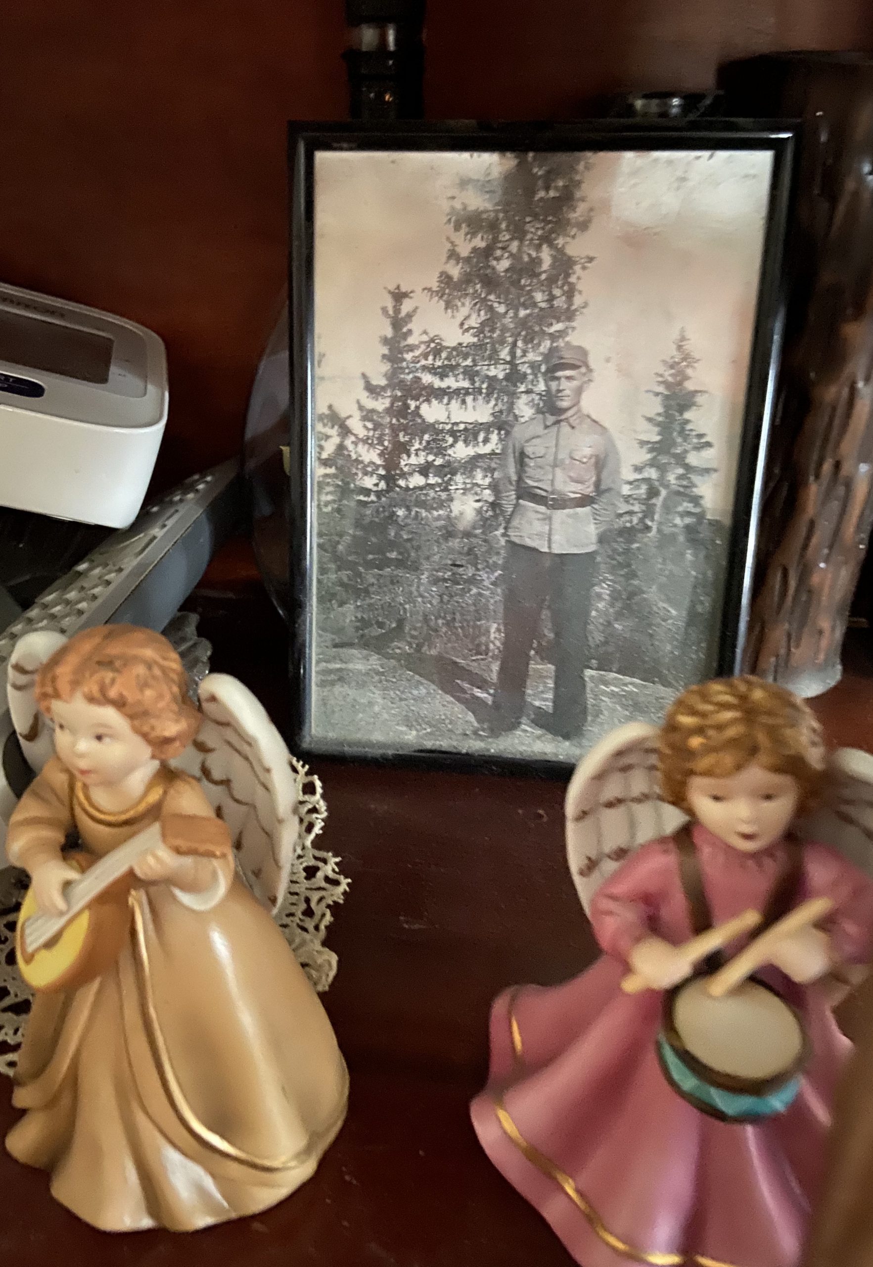 pölyttyneenä lipaston päällä pikkuisten posliinienkelten seassa. Sen hän arveli otetun läheisellä Ketunkalliolla.